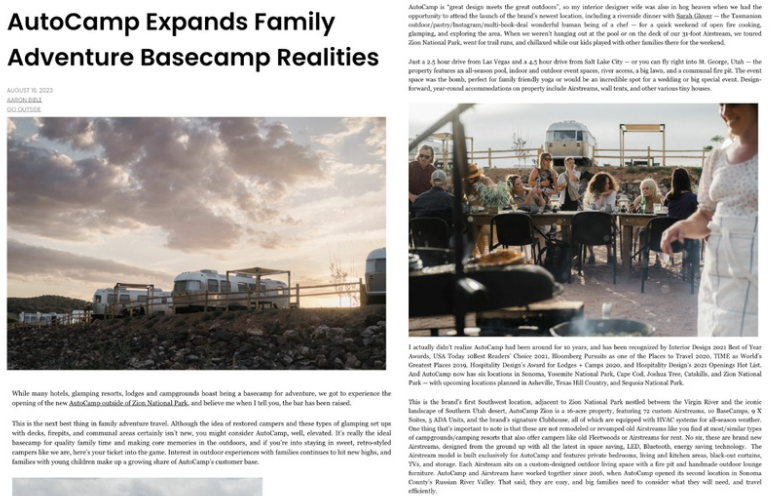 influencers and brands including Sarah Glover, High West Whiskey, Kodiak, Airstream, Barebones Living, and Benchmade knives. We created content and community in the most authentic ways possible, cooking, hiking, doing yoga, testing product, and passing on memories to guests while building brand value and content for AutoCamp’s growing national footprint.